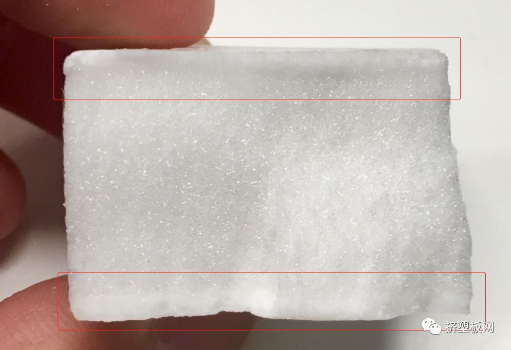 无水晶反光,说明二氧化碳挤塑板的泡孔更细腻。